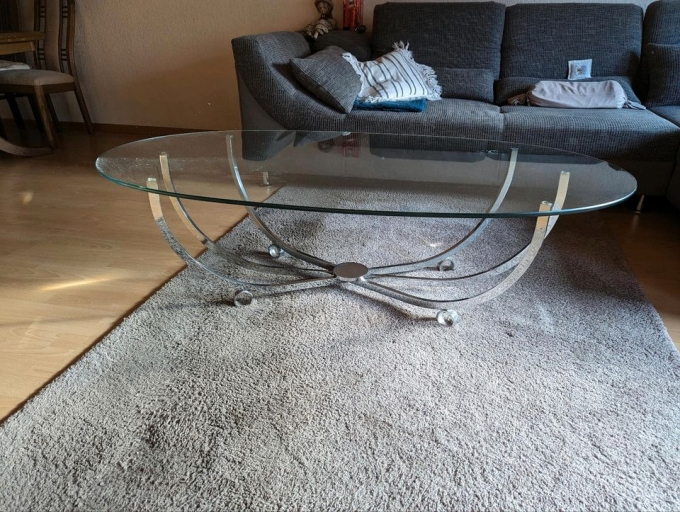 Sehr gut erhaltener Glastisch, platte aus Glas.