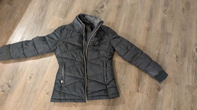 Verkaufe gebrauchte, gut erhaltene Damen Winter Steppjacke der Firma Covalliero in der Größe S (36) und Farbe Graphite, was ein relativ dunkles grau darstellt. Es handelt sich um eine dick wattierte Jacke mit einem feminine und taillierten Schnitt, das heißt sie trägt nicht auf und ist auch nicht zu lang. Daher stört sie nicht während des Reitens und ich habe sie also auch bei kalten Tagen während des Reitens angelassen. Sie hat einen schönen Doppelkragen sowie einen passenden Strickbund am Handgelenk. Metallik Zwei-Wege Reißverschluss in der Kontrastfarbe Gold. Zwei Taschen mit ebenfalls goldfarbenden Reißverschlüssen. Dazu farblich passend gibt es eine goldene Verzierung an der Schulternaht und einen goldenen Schriftzug auf dem Kragen am Nacken. Atmungsaktive und wasserabweisende Steppjacke (2000 g/m²/24 h) mit 5000 mm Wassersäule. Außenmaterial: 100 % recyceltes Polyester, Membran: 100 % thermoplastisches Polyurethan, Futter und Wattierung: 100 % Polyester. Jacke ist getragen aber sehr gut erhalten und gewaschen. Es können natürlich entsprechende Gebrauchsspuren enthalten vorhanden sein, wie leichte Flecken, die aber nicht auffällig sind. Jacke ist nicht kaputt und enthält keine Löcher oder Risse und auch die Reißverschlüsse sind intakt.