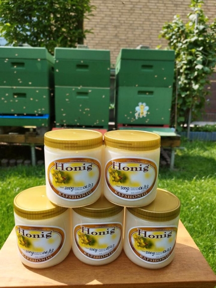 Leckerer cremiger Rapshonig aus unserer kleinen Hobbyimkerei, schonend geerntet und gerührt.