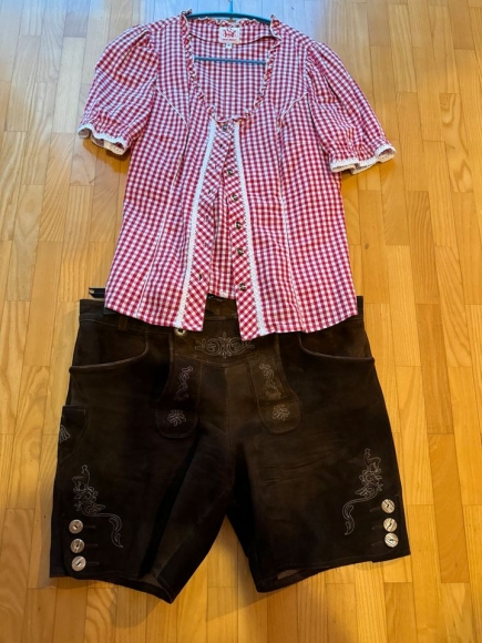Verkaufe eine gebrauchte aber gut erhaltene kurze Lederhose mit Trachtenhemd/-bluse, weil sie nicht mehr passt.
