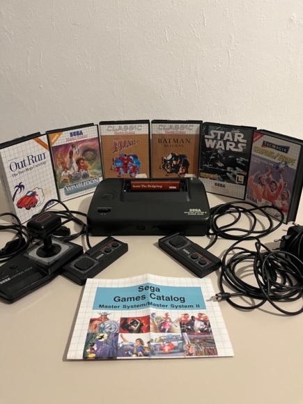 Sega Master System II, Sega Konsole, Retro Konsole, alte Spielkonsole, 90er Jahre Spielkonsole, Vintage Sega, 8 Bit Konsole, Retro Gaming, Sega Klassiker, Sonic Spiel, Sonic The Hedgehog, Sega Sonic, eingebautes Sonic, Sega Konsole mit Spielen, Sega Sammlung, Spielekonsole mit Zubehör, Sega Spiele mit Anleitung, Original Sega Spiele, SEGA Joystick, Control Stick, Control Pad, 2 Controller, Retro Joystick, SEGA Komplettpaket, SEGA Set mit Spielen, SEGA Star Wars, Star Wars Retro Spiel, Batman Returns Sega, The Flash Sega, Out Run Sega, Wimbledon Spiel, Champions of Europe Sega, SEGA Fußballspiel, SEGA Rennspiel, SEGA Game Catalog, SEGA Katalog, Sammlerstück, Videospielsammlung, Sega Power Base, Konsole 1991, alte Sega Konsole kaufen, Sega gebraucht, Sega in gutem Zustand, funktionierende Sega, voll funktionsfähig, tested, Klassiker Spielekonsole, für Sammler, für Retro Fans, Nostalgie Konsole, Rarität, 90er Gaming, SEGA Konsole komplett, SEGA Konsole voll spielbar, Sonic eingebaut, Sega Konsole mit Bildschirmspiel, Sega Spielepaket, Sega Konsole Angebot, vollständiges Sega Set, SEGA inklusive Anleitung, Sega Komplettsystem mit Spielen