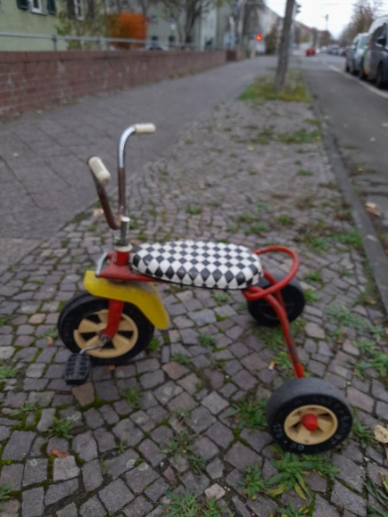 Verkaufe dieses abgebildete DDR Dreirad. Beschädigung an Sitz und Reifen, fährt aber ohne Probleme