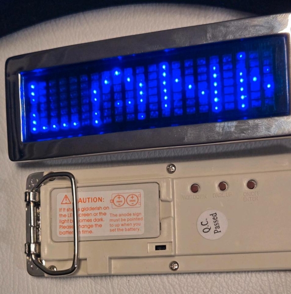 Lauftext frei gestaltbar, kein Kabel oder Software, einfach zu bedienen, 6 Speicherplätze, Groß und Kleinschreibung möglich.