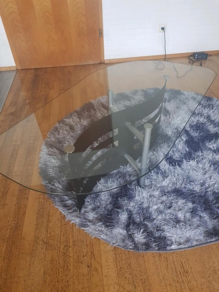 Designer Wohnzimmertisch Glas Tischgestell schwarz. Tischplatte aus Glas und abnehmbar. Glasplatte 114x65 oval.Gestell 43 hoch. Es hat natürlich Gebrauchsspuren