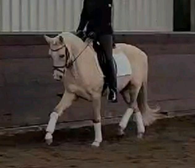 Gold Michel ist ein talentierter 4 jähriger Reitpony Wallach, Palomino, 145 cm, Dressur gezogen.