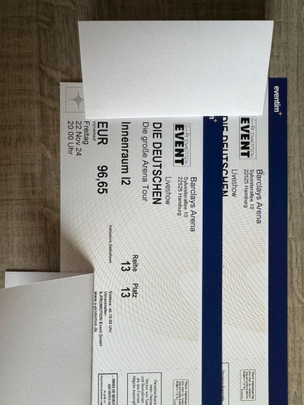 Hallo, wir verkaufen zwei Karten mit topplätzen für die Veranstaltung die Deutschen mit Nizar und Shayan in Hamburg am 22. November. Aufgrund eines Fehlkauf ist es aktuell zu verkaufen.