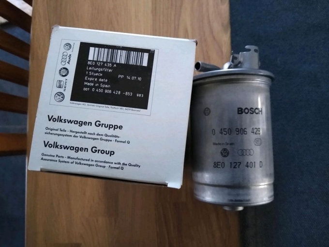 Dieselfilter 8E0127435A, 8E0127401D, VW, Audi, Neu, original Teil/ verpackt. Nie verbaut. Da von Privat ohne Garantie, ohne Rücknahme und ohne Widerrufsrecht
