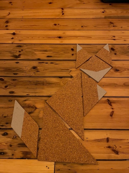aufgrund von Umzug verschenke ich meine selbstgemachte Korkpinnwand in Form eines geometrischen Fuchses :)