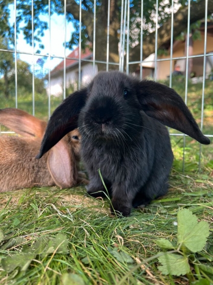 wir verkaufen ab sofort drei unserer 9 Wochen alten Mix-Kaninchen (Vater: Mecklenburger Schecke x Roter Neuseeländer; Mutter: Widder) aus einer Gruppe von insgesamt sieben Kaninchen. Geschlecht und Farbe kann frei gewählt werden. Auf Wunsch würden wir die Mutter (siehe siebtes Bild; ungefähr 1.5 Jahre alt) auch abgeben. Alle Kaninchen sind handzahm und lassen sich gerne streicheln.