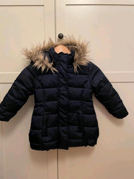 Biete hier eine dunkelblaue wattierte Steppjacke von H&M in einem sehr guten Zustand an. Größe 110. Kapuze mit synthetischem Kunstfell.