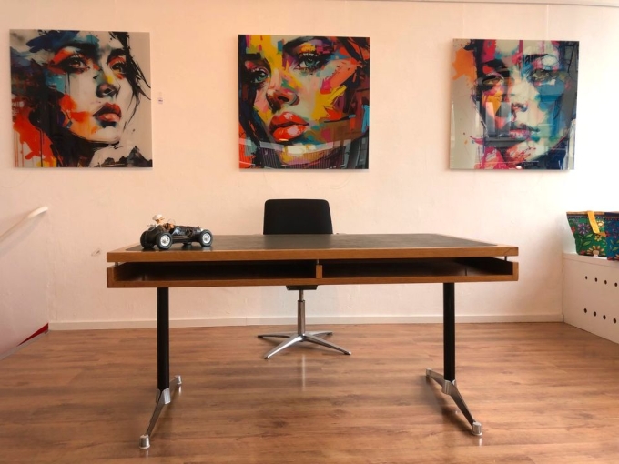 In dieser Anzeige bieten Sie auf einen sehr interessanten und schönen Designer Schreibtisch von Egon Eiermann für Herman Miller. Ein zeitloser Klassiker und Eyecatcher für jeden Wohn- und Arbeitsbereich. Untergestell Alu-verchromt, Tischplatte Holz massiv, Nussbaum furniert mit einer grünlichen Ledereinlage. Dieser Schreibtisch wurde in den 70er Jahren in einer begrenzten Stückzahl für den deutschen Bundestag von Herman Miller hergestellt. Sollten Sie einen Versand wünschen, sind wir gerne bereit im Umkreis von ca. 100km die Ware gegen einen kleinen Kostenbeitrag anzuliefern.