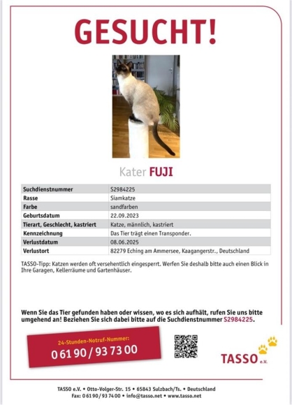 Unser Kater Fuji wird vermisst, entlaufen in der Kaagangerstraße
