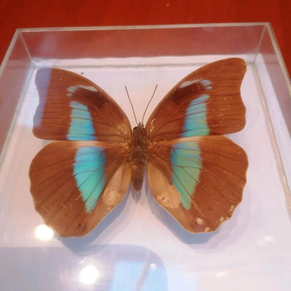 Ein Schmetterling aus Mexiko / Mittelamerika. Farben : braun /von blau bis grün perllmuttartig schimmernd. 9,2x7,5cm