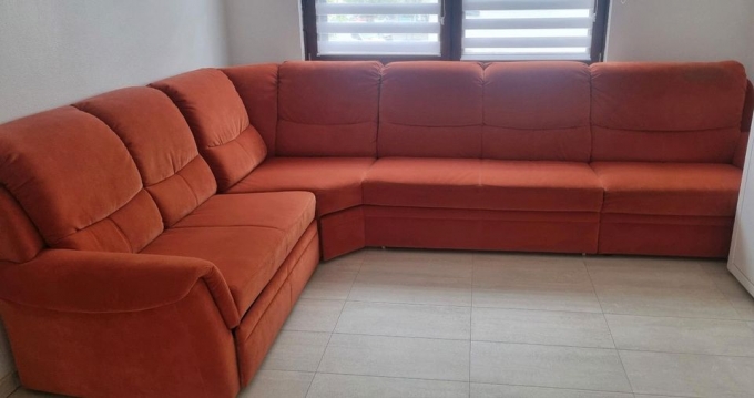 Eckgarnitur zu verkaufen in der Farbe Orange Maße ist 1.80×2.90 cm zum selber abholen siehe Foto