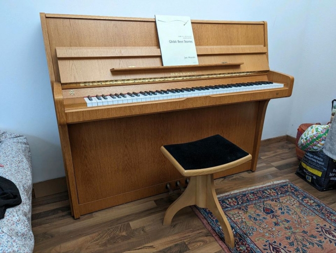 Zum Angebot steht hier mein Seiler Klavier Modell 114. Es ist in schöner heller Eiche und funktioniert tadellos.