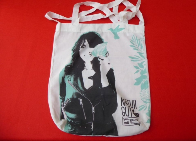 Unbenutzter Einkaufsbeutel aus Recycling-Material mit Motiv der Sängerin NENA - ursprünglich einmal vor Jahrten bei Penny verkauft - wurde bei mir nur sorgsam gelagert, nicht benutzt.