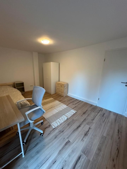 Zimmer: Das angebotene Zimmer ist hell, modern möbliert und hat eine Größe von ca. 15 m². Es verfügt über eine große Balkontür, die viel Tageslicht hereinlässt. Das Zimmer ist bereits mit einem Bett, Schreibtisch, Stuhl, Kleiderständer und einer Kommode ausgestattet, sodass du direkt einziehen kannst. Der Laminatboden verleiht dem Raum eine warme, einladende Atmosphäre.