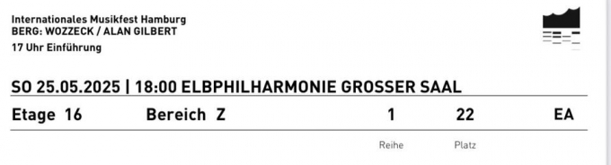 Die Karten sind für folgendes Konzert in der Elbphilharmonie in Hamburg: