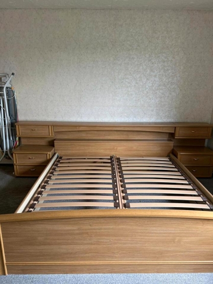 Ehebett mit Überbau und Nachtkästchen