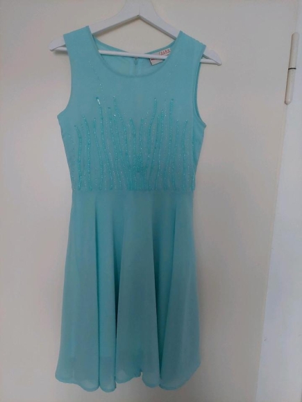 Ich biete ein elegantes Kleid in Größe 176 an. Die Farbe ist hell türkis. Für die Länge siehe Bilder oder schreiben Sie eine Nachricht. Probe oder Abholung möglich.