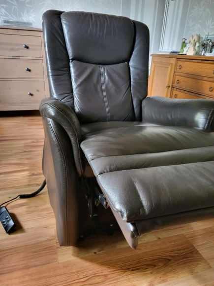 Wir bieten diesen voll funktionstüchtigen elektrischen Fernsehsessel mit Aufstehhilfe an. Bezug braunes Leder Abholung Overath ( Ortsteil nähe Marialinden )