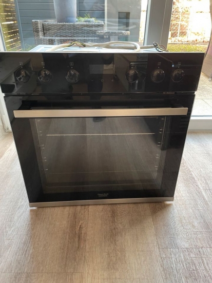 Auf der Glaskeramik sind ein paar Flecken und Kratzer zu sehen (siehe Foto), möglicherweise bekommt man einige der Flecken mit geeignetem Spezialwerkzeug entfernt.