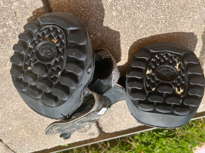Die Schuhe sind erst ein paar Monate alt, ich habe sie für ein Rehepferd gekauft und sie wurden NUR im Stall in Einstreu getragen. Die Sohle ist also wie neu.