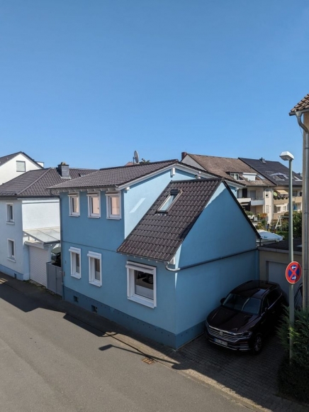 Eschborn - Privat an Privat. Wir verkaufen unser freistehendes Einfamilienhaus im Eschborner Ortskern mit großem Garten, überdachter Terrasse, Hof, Garage, Carport und Nebenhäuschen. Das Grundstück liegt mitten im Ort in einer ruhigen Anliegerstr. und ist von zwei Straßen begeh- und befahrbar. Das Obergeschoss wurde 2015 als Neubau anstelle des alten Daches aufgesetzt, das Erdgeschoss 2011 komplett kernsaniert. Eingebaut wurden neue Bäder (beide mit Dusche, oben zusätzlich mit Wanne), die kompletten Elektro-, Heiz- und Wasserleitungen, Fenster mit elektrischen Rollläden, Haustür, Fassadendämmung, Terrasse, sehr große Garage und Carport. Geheizt wird aktuell mit einer Gasbrennwertheizung. In der unteren Etage gibt es neue Heizkörper und in der oberen Etage eine Wandflächenheizung. Für eine Wärmepumpe wäre genug Platz vorhanden, Leerrohre für Solar sind vorbereitet, Elektrokabel für Wallbox ebenfalls. Das Fachwerk des ursprünglich wahrscheinlich ca.1890 gebauten Hauses wurde im Wohnbereich teilweise freigelegt und sichtbar gemacht. Der Keller besteht aus alten Natursteinen und trägt so zum gesunden Klima des Hauses bei. Es gibt eine 30 qm Garage, einen großen Carport mit elektrischen Rolltor, zwei Stellplätze und ein Nebengebäude für Fahrräder, Gartengeräte oder Vorräte.