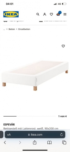 Bettgestell mit Lattenrost, weiß, 90x200 cm!Bett ist noch unverpackt und daher neu!Abbildung ist ähnlich Bild 1 nur in Grau und mit Edelstahlbeinen! Es handelt sich um Privatverkauf!