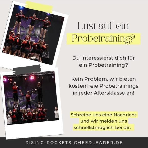 Wir bieten Cheerleading ab 5 Jahren an. Bei weiteren Fragen gerne per Nachricht an mich wenden, oder per E-Mail :-)