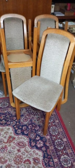 5 Esszimmer-Stühle, Massivholz, buchefarben, gepolstert, gebraucht. Sollte Ihnen eine Abholung nicht möglich sein, bitte um Kontaktaufnahme mit mir. Ich könnte eine Lieferung im Umkreis von 50 km um Zeven arrangieren. Versandkostenübernahme Verhandlungssache. Keine Gewährleistung, da Privatverkauf. Rücknahme und Kaufpreiserstattung möglich. Rücksendekosten zu Lasten des Käufers.