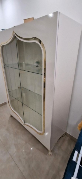 Ich biete, eine hochwertige Esszimmer mit goldenem Details mit 6 Stühlen, den Tisch kann mann für mehr als 12 Personen vergrössern. 4 Stühle sind in grau 2 davon sind in Blau.