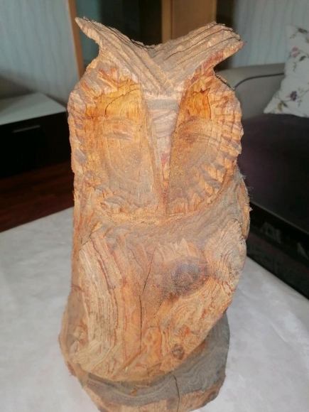Holz Eule aus dem Stam gesägt. Als Deko oder Sammler von Figuren....