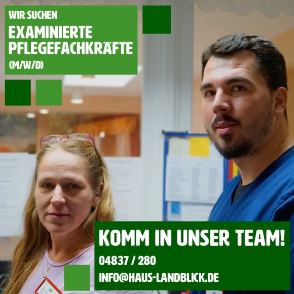 Gesucht: Eine enthusiastische und examinierte Pflegefachkraft, deren Herz, für diese Aufgabe schlägt. Hier findest du mehr als nur einen Job – ein Ort, an dem du deine Fähigkeiten entfalten und Teil einer herzlichen Gemeinschaft sein kannst. Im Haus Landblick bieten wir unseren Mitarbeitern nicht nur eine erfüllende Aufgabe, sondern auch attraktive Zusatzleistungen wie Sonn- und Feiertagszuschläge, sowie halbjährliche Sonderzahlungen.