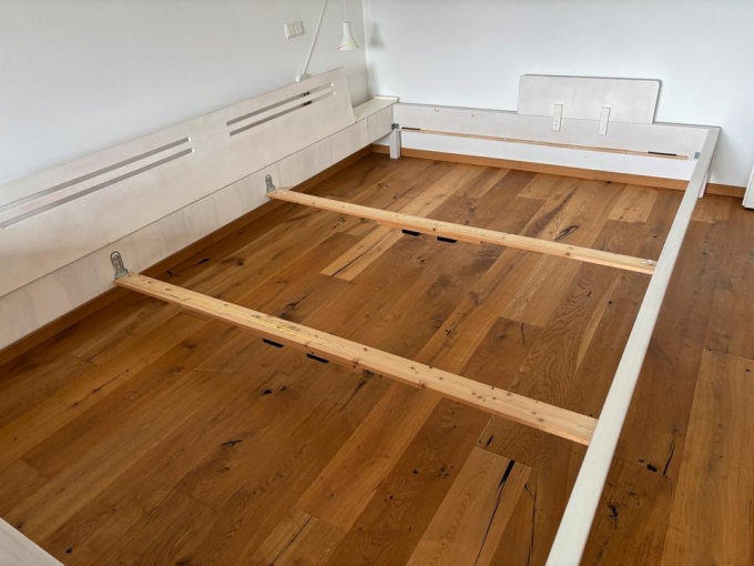 Familien Bett Eiche weiß gebeizt, ohne Matratze und Lattenrost. 1 m 1 m und 1,40 m