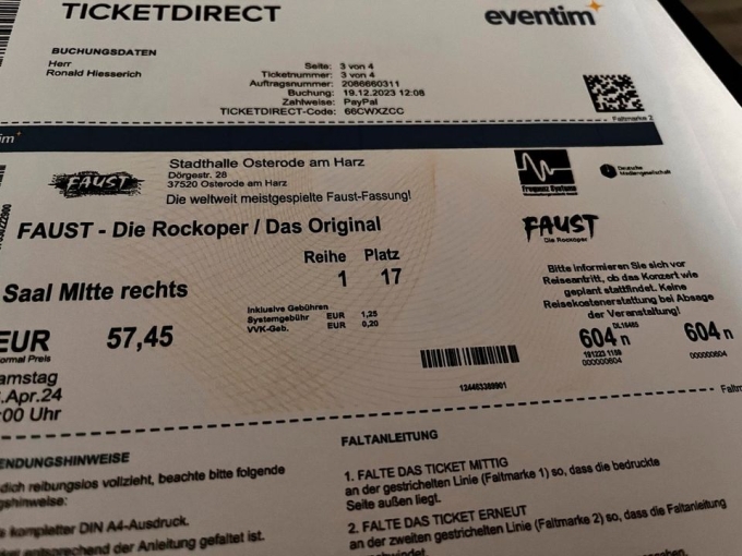 Zwei Karten für die Rockoper FAUST in der Stadthalle Osterode am Harz am Samstag 06.04.24 um 20 Uhr.