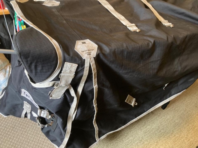 Sitzt bei meiner Quartermixstute (153cm) mit kurzem Rücken und breiter Brust etwas knapp, leichte Gebrauchsspuren. Verkauf, da ich nur krankheitsbedingt eingedeckt habe.