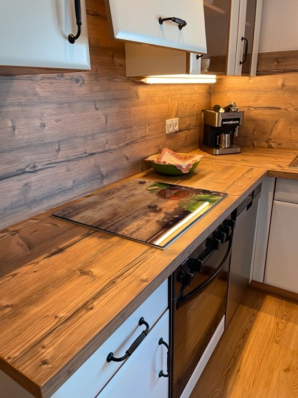 Die Wohnung ist mit einer gemütlichen Wohnküche mit Essecke