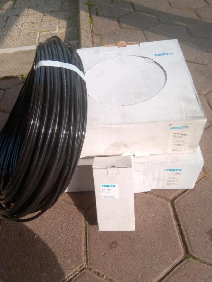 Zum Verkauf steht ein Konvolut aus Festo Pneumatik Fittingen und Schläuchen sowie Druckminderer und Pneumatkventile.