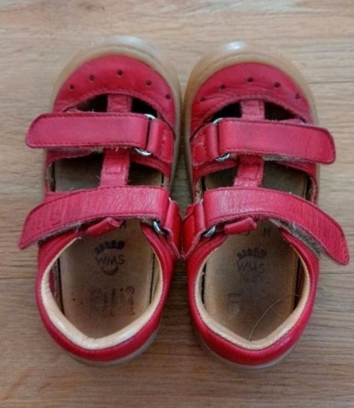 Wir verkaufen sehr niedliche Filii Sandalen/ Barfußschuhe in einem knalligen Rot. Größe 23/Weite M. Das Modell heißt: Kaiman bio nappa velcro. Die Schuhe sind aus Bio-Leder gefertigt. Sehr bequem mit dünner Laufsohle. Das Paar ist in einem sehr guten Zustand, da viel zu schnell zu klein. Die Laufsohlen haben nur minimalen Abrieb.