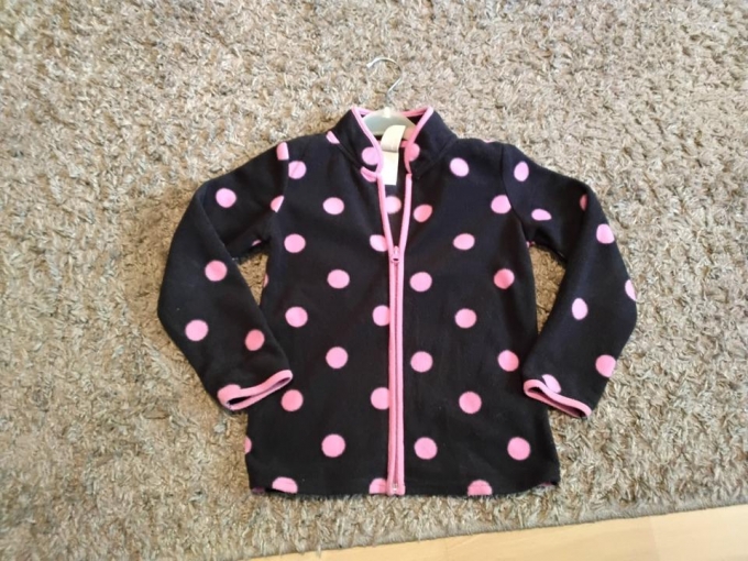 Biete Ihnen hier eine schöne Fleecejacke in Größe 122 an. Die Jacke ist in schwarz mit pinkfarbenen Punkten und von Palomino.