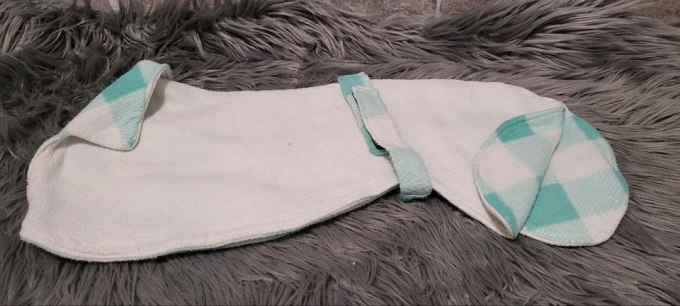 Schöner Fleecemantel abzugeben. Ein paar Mal getragen, da er doch recht knapp saß. Er ist eher für zierliche Hunde wie z.B. Windhunde gedacht. Die Rückenlänge ist ca. 45cm. Kleines Brandloch vorhanden- siehe Bild2