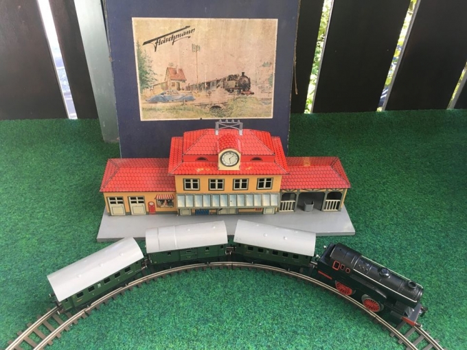 Fleischmann Uhrwerk Eisenbahn US Zone Blechbahnhof Spur 0
