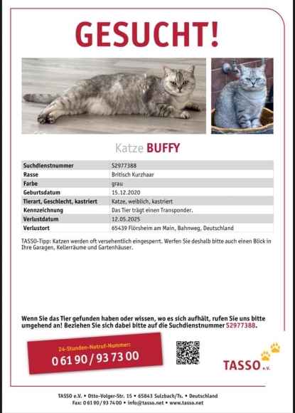 Meine Katze Buffy ist leider seit dem 12.05.2025 vermisst.
