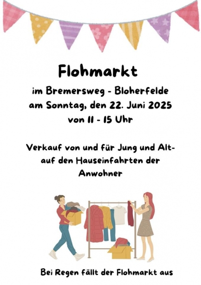 Am 22. Juni 2025 findet von 11 bis 15 Uhr im Bremersweg ein Flohmarkt statt.