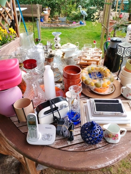 Flomarktartikel, Selbstabholung, Geschirr, Gläser, Radio, Telefon, Vasen und vieles mehr, alles auf den Fotos,Elektrogeräte funktionieren ohne Tisch und Blumen