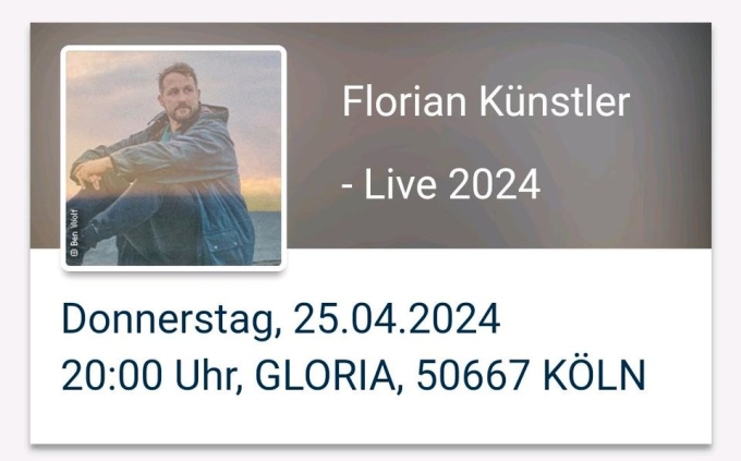 Ticket abzugeben für das Florian Künstler Konzert in Köln am 25.4.24 um 20 Uhr Gloria .
