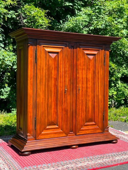 Frankfurter Wellenschrank als Stilmöbel aus Nussbaumholz.