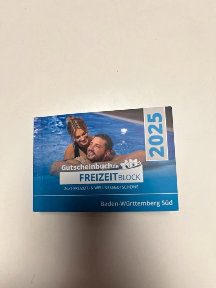 Verkaufe das Gutscheinbuch Freizeitblock 2025 für die Region Baden-Württemberg Süd. Dieses Buch bietet eine Vielzahl von attraktiven Gutscheinen für Freizeitaktivitäten, Restaurants, Wellness, Ausflüge und mehr.