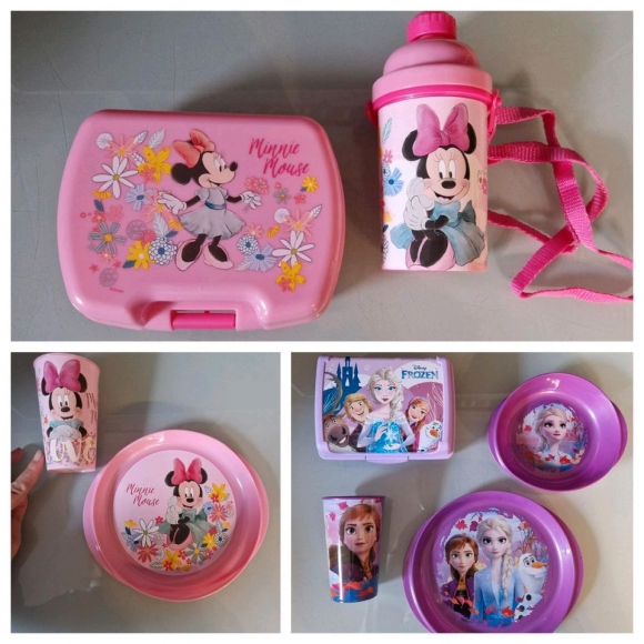 Frozen, Minnie Mouse/Maus Brotdose,Flasche,Teller,Becher,Schal e